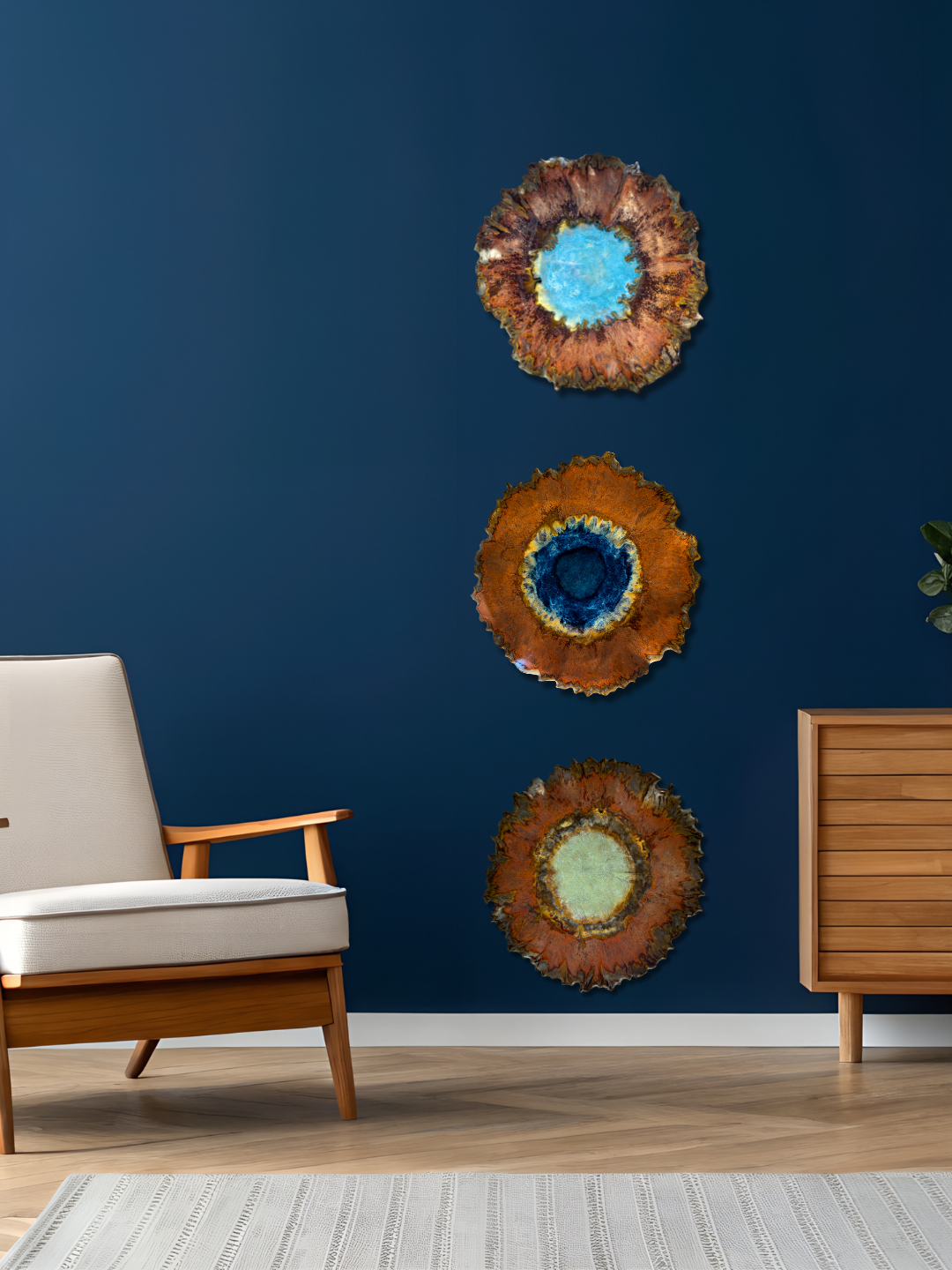 These veils are not painted, but grown — born from minerals drawn toward oxygen in the air itself. The firing becomes a meditation on transformation: earth becoming breath, wood becoming ash, metal becoming illumination.